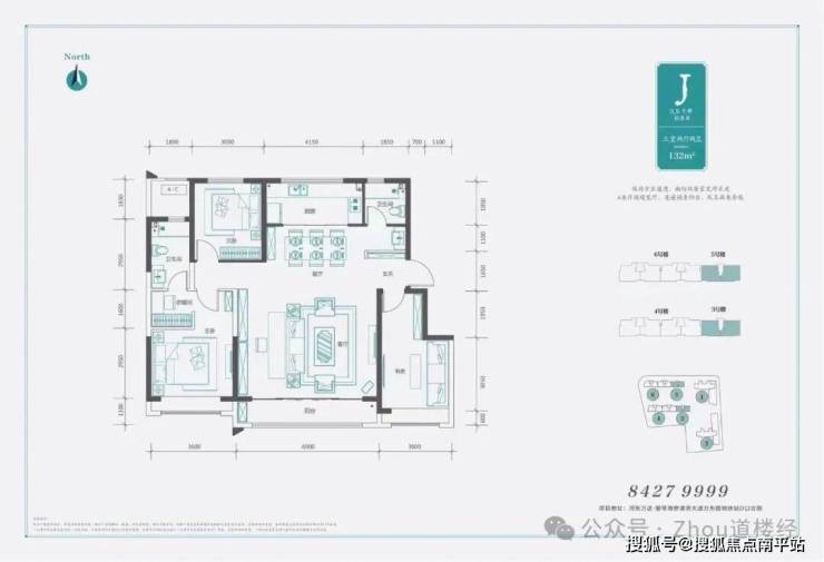5号楼132㎡三室两厅两卫,宽庭落地窗开间6米,一梯两户9层到顶