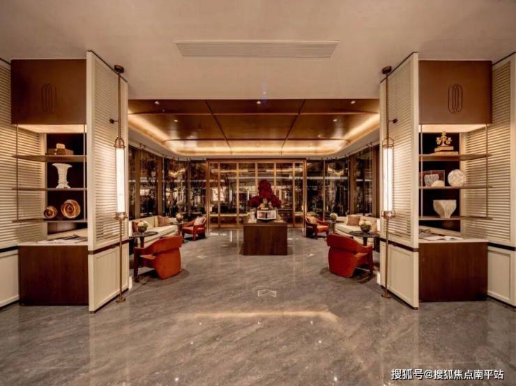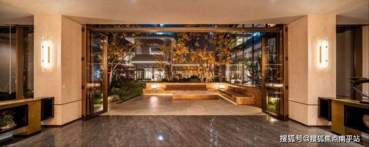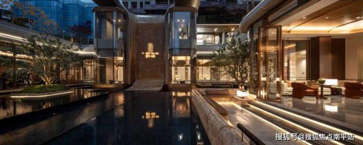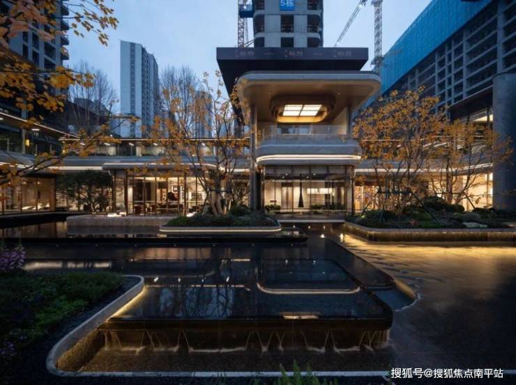 约11.8米的高差叠水 ,模拟湘江奔涌之势,水声潺潺,滤静尘嚣。庭院成为空间的灵魂, 三面环景的会所通过整幅落地观景玻璃将其全景纳入室内 ,无论闲暇洽谈,或是在会所休闲,视线皆可自由穿梭于水光绿意之间。 延伸而出的景观平台 ,更将生活场景从容过渡至自然之中,实现室内与庭院的无缝衔接。
