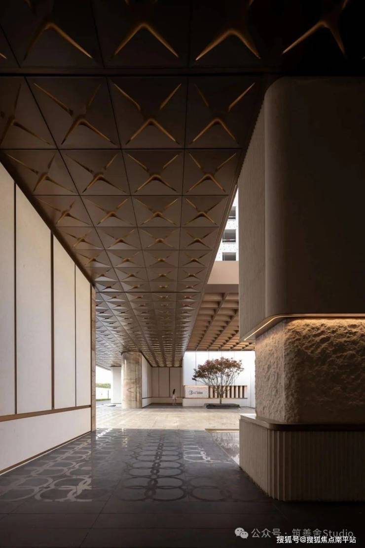 吊顶板设计灵感源自海棠花,密拼铝板中嵌入点状星光,光与影的交织展现出功能与艺术的完美融合。入口处精选豪华奢石,以其独特的纹理和温润质感,为归家者打造一段专属的记忆。正如叶片依赖根茎枝干得以绽放,西棠和煦Ⅲ正是对自我价值的一次深刻探索与展现。