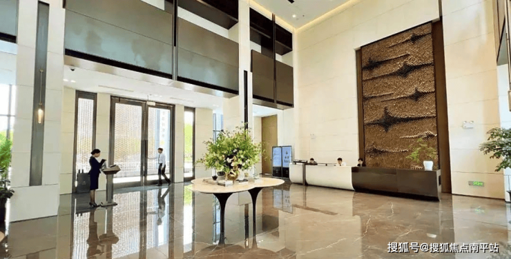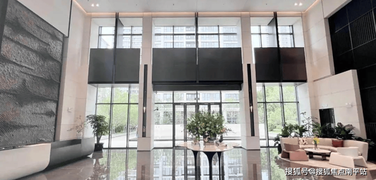归家大堂挑高近10米,浮雕背景墙、围合式弧形沙发、热带大叶绿植、24小时门值……这是星级酒店大堂才有的气场。