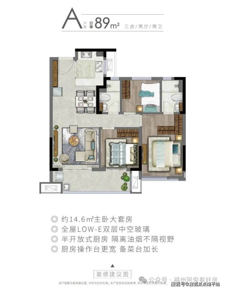 89㎡三房两厅两卫:紧凑实用,三开间朝南,刚需上车首选,总价约 210 万起。