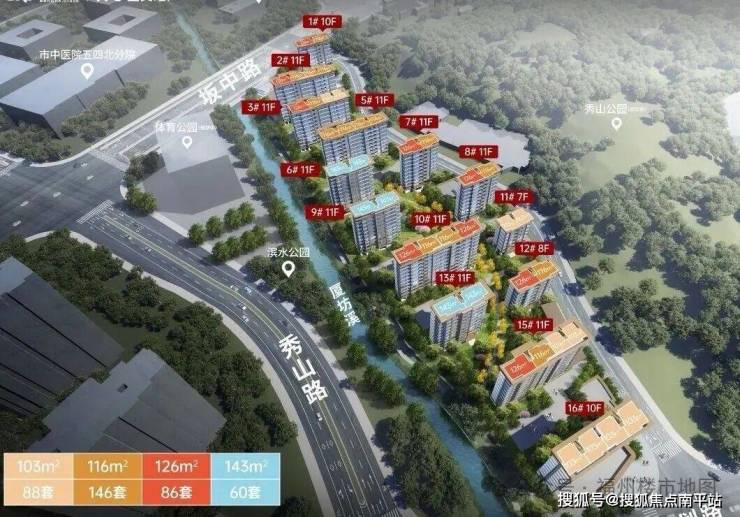 晋安区北区板块,战坂片区,容积率1.4,纯商房,总计380套,项目规划规划有14栋7-11层的低密花园洋房,主力户型为103㎡、116㎡、126㎡及143㎡四房产品。