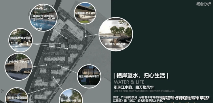 豪宅园林缔造者上海朗道景观规划设计有限公司,从刻画雨后珠江之景的《雨后珠江登望》中提取水、石、鸟、花、云、树、舟的自然元素,以现代的设计展现自然景观的惬意意境之美,为高净值人群的生活体验和使用需求提供顶级生活范本。