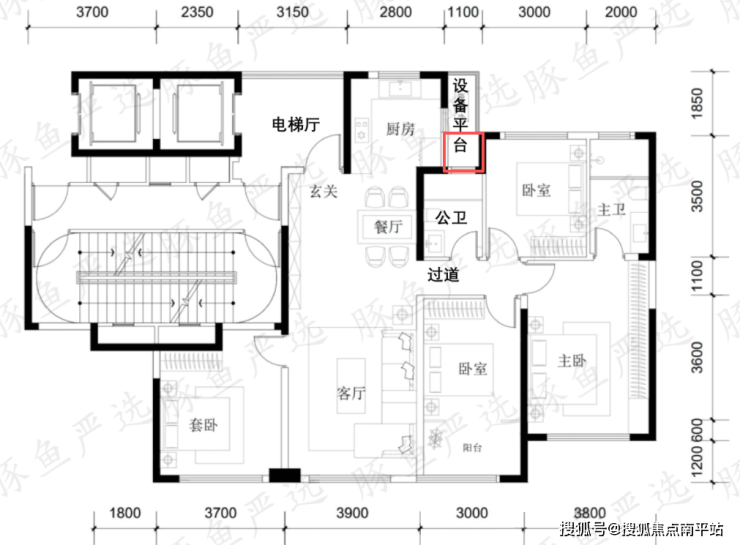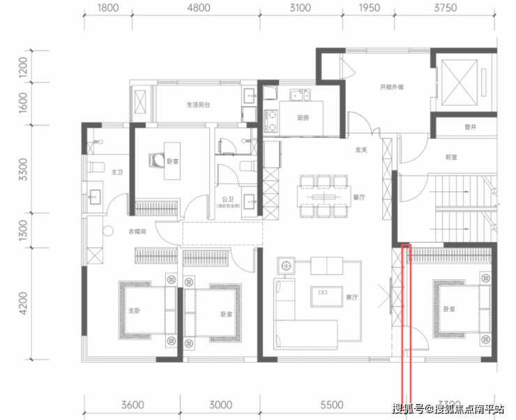 118㎡最大的问题就是面宽太小,导致整个公区客餐厅的空间很奇怪,客厅竟然才3.9m,新规下很少有小于4m的开间,最奇葩的是老人房的面宽给到了3.7m,为什么不学学招商适当让一点面宽给客厅?