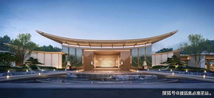 三进核心景观观澜庭, 大面积水景串联,以泊岸舟行的独特意象造景,写意东方雅致美学。