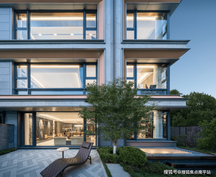建筑立面运用金属铝板线条配以斜切框感大面玻璃,营造通透镜感。现代极简的流线型设计,搭配公建化光幕立面,赋新城市美学封面。