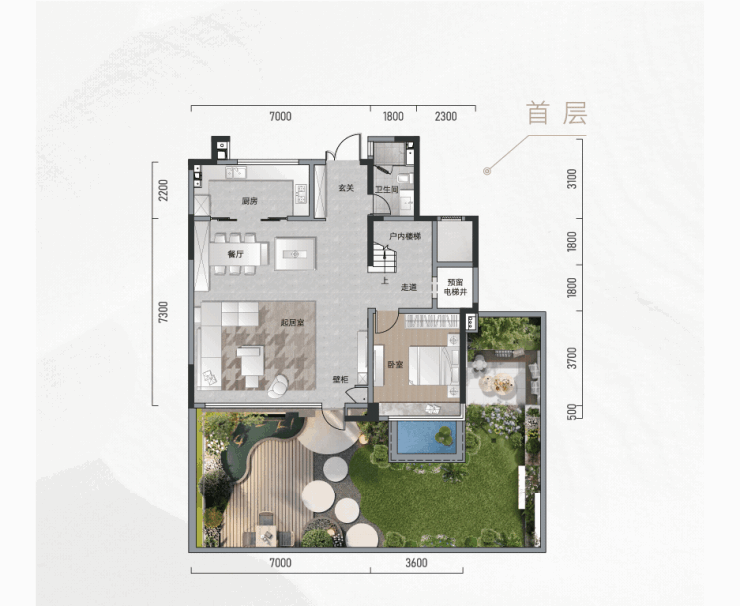 最大私享近百平超大庭院,以围合式院落布局,营造繁华都市中有天有地的诗意生活。户内预留独立电梯井,从入户伊始便彰显非凡气度,尽显墅居的私密与尊崇。
