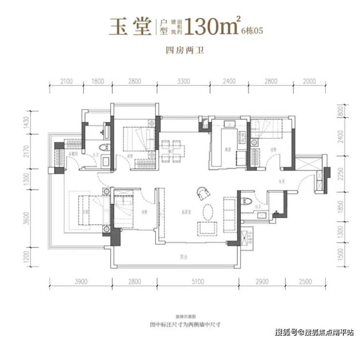 130㎡的4房2厅2卫,设计:南北通透,独立玄关,客厅5.1米宽。客餐厅分离,主卧270°飘窗+衣帽间,