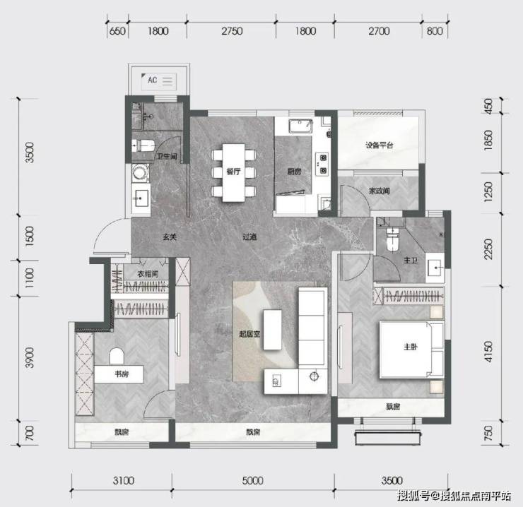 ▲金地时代印建面约115㎡三室两厅两卫户型图