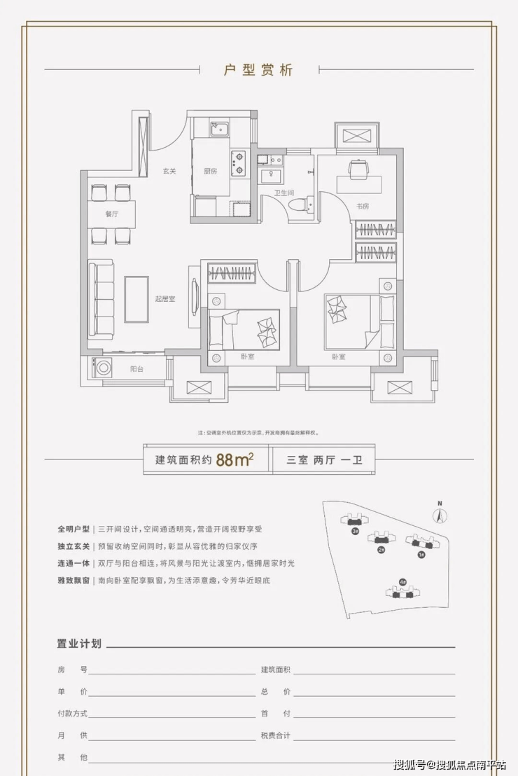 88 ㎡三室两厅一卫 ,108 ㎡三室两厅两卫