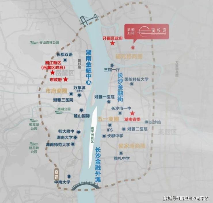 开福大道与福元路交汇处,一江两河区域,湘江以东,浏阳河以北,捞刀河以南的区域,是长沙主城价值金廊