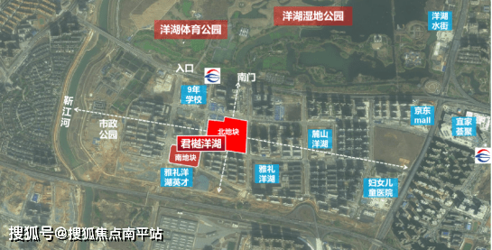 洋湖南,正中心。君樾洋湖北地块,整体规划及实景示范区的布局,同样突出一个“中”。