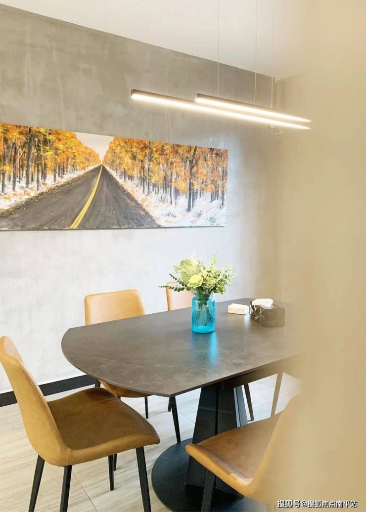 棕色餐椅与墙面挂画搭配的恰到好处,冷静中透着温暖,让居住者感受到温暖的居家氛围。