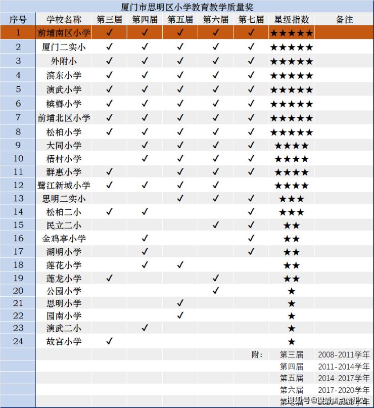 思明区共成立了13个教育共同体,其中前埔南区小学是教育共同体核心校。2008年至今,连续5届获得思明区小学教育教学优质奖。厦门2017-2025年共9届高考,前埔南区小学清北校友共12人,全市第9。此外,数据显示,前埔南区小学每年约30%的优质生源去了小升初提前批,生源质量相当扎实!