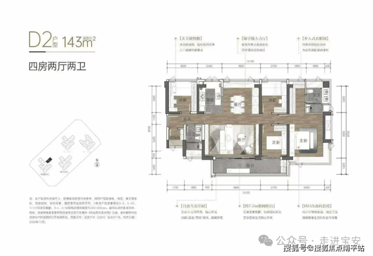 建面约108㎡/109㎡/113㎡/138㎡/143㎡4房,格局方正,打造双飘窗主卧、步入式衣帽间等个性化空间。