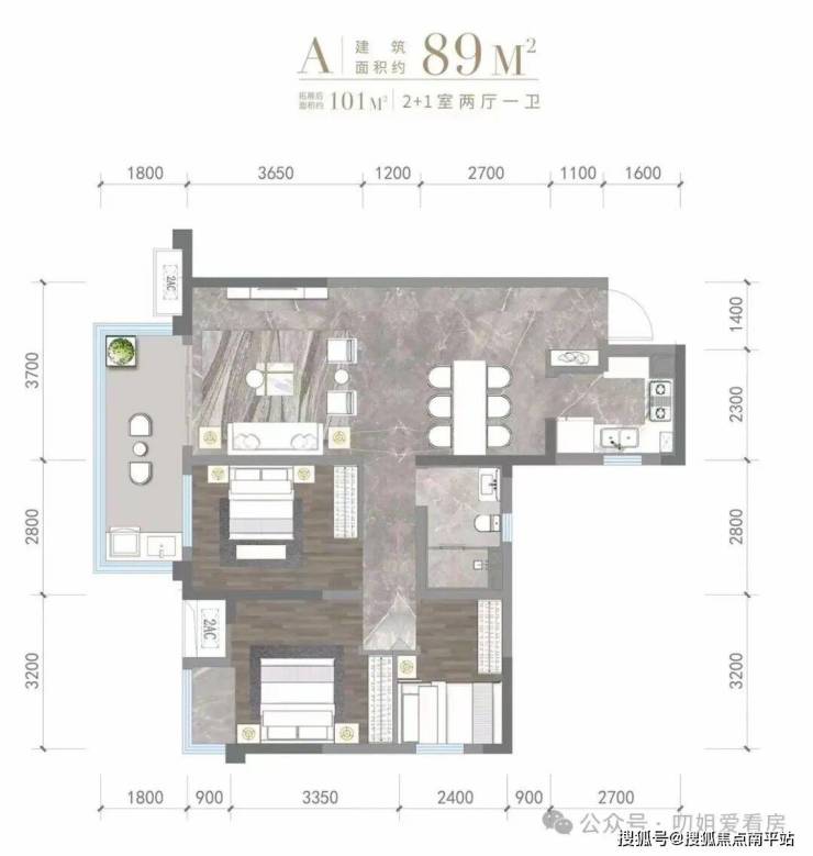 89㎡为三房,常规布局,不足是只一个卫生间。