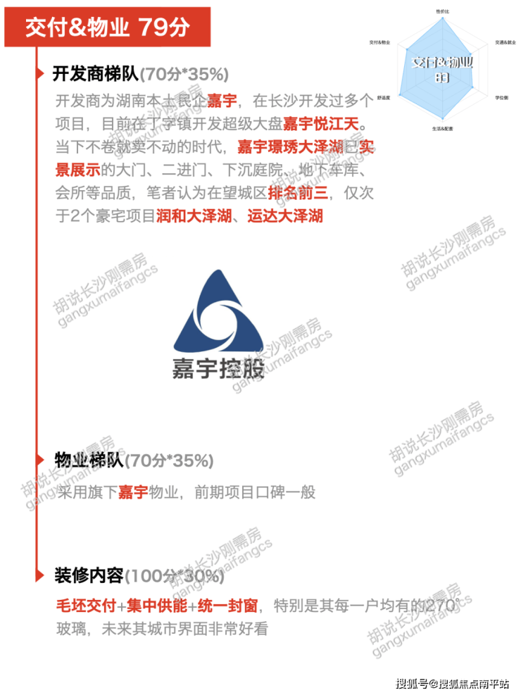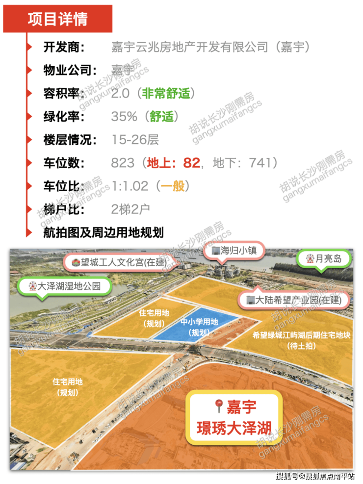 项目由嘉宇拿地,丁字镇片区的同学对它非常熟悉。在当下不卷就落后的时代,嘉宇璟琇大泽湖已实景展示的大门、二进门、下沉庭院、地下车库、会所等品质不错,笔者认为在望城区仅次于润和大泽湖、运达大泽湖