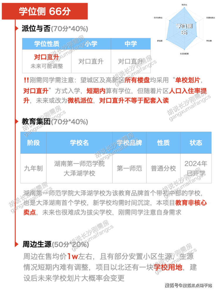 望城区目前采用“单校划片,对口直升”模式,每年会重新划片,鉴于嘉宇璟琇大泽湖北边有一块教育用地,未来调整可能性较高