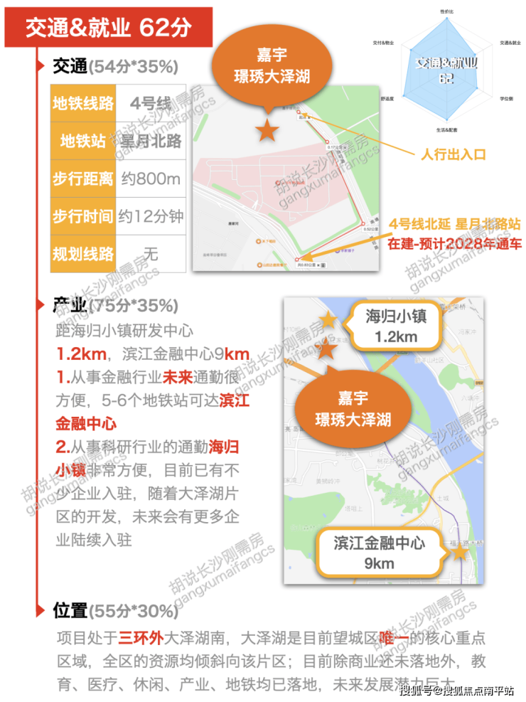 周边产业配套:海归小镇(1.2km)、滨江金融中心(9km),目前产业配套一般