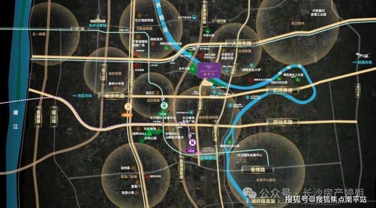 七横路网:江榕路、机场高速、劳动路、曲塘路、香樟路、长托路、湘府路,贯穿城市东西,畅达全城;