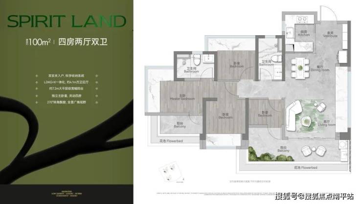 约7.2m大平层级阳台,独立主卧套 灵动四房 270°转角飘窗全景广角视野