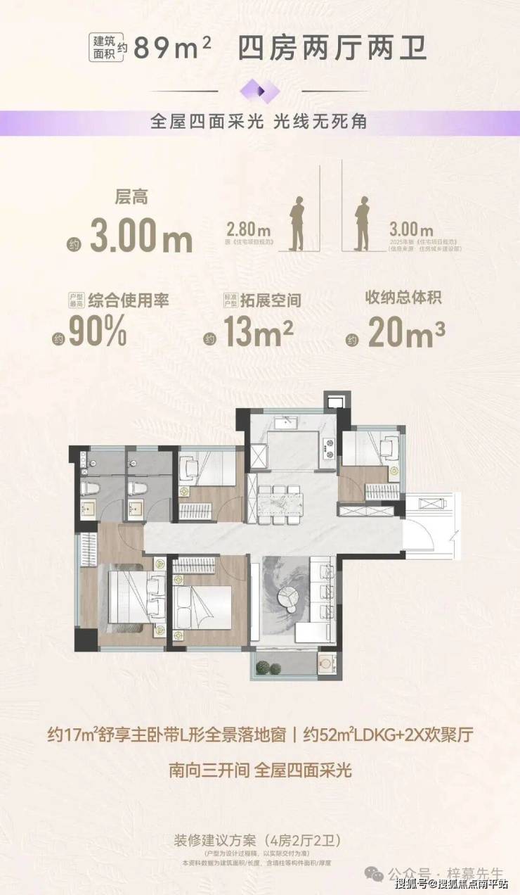 89㎡更堪称刚需王炸,直接做成四房大空间,次卧不挤单人床,全屋四面采光通透敞亮,90%得房率让新业主赚足实惠;