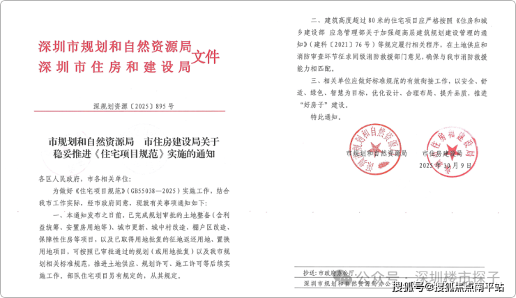 10月9日,一份由深圳市规划和自然资源局、市住房和建设局联合发布关于稳妥推进《住宅项目规范》(GB55038-2025)实施的通知(以下简称《通知》),引发市场高度关注。《通知》明确,即日起报批建设的高度超80米住宅项目,应严格按照《住房和城乡建设部 应急管理部关于加强超高层建筑规划建设管理的通知》(建科〔2021〕76号)等规定履行相关程序,在土地供应和消防审查环节征求同级消防救援部门意见,确保与我市消防救援能力相匹配。