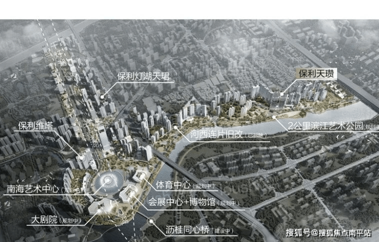 生活配套方面,保利天瓒项目自建下沉式商业街区,参考成都SKP设计理念,将地上公园与地下商业有机融合,可以满足满足日常消费需求。滨江艺术公园投资2亿元,全长2公里,分为艺术水岸、市民剧场、生态体验三大功能区,设置滨水步道、儿童乐园、滨水沙滩等18个活动场所,已建成开放的艺术水岸区成为佛山新晋网红打卡地。