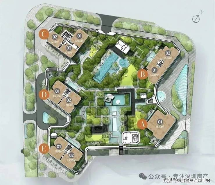 A栋 (约512㎡) : 层高3.6米,四套房,东南,36层,3梯1户,约30余套。