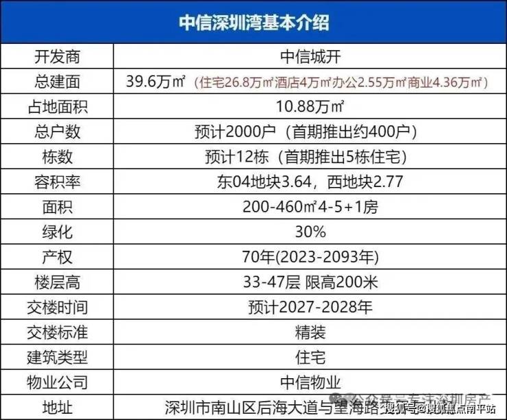 最新消息:深圳湾压轴巨制【中信城开信悦湾】,已进入开盘前最后冲刺!预计下周开放样板房,月底开盘,小区共407套住宅,面积段为211-218-302-370-512㎡以及几套顶复,首推E栋约74套302㎡,西南向看歌剧院。整体计划于12月底完成首批房源入市。单价预计15-25万/㎡,(具体以开发商公布为准)