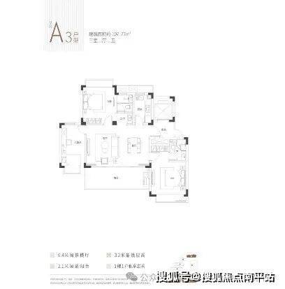 洋房107㎡三房二厅,南北通透纯板楼大横厅