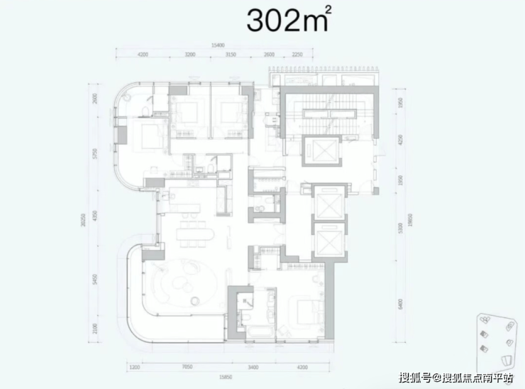 其中 标准层为 211-218-302-370-510㎡ 的3-4房,另外顶层复式有 518-655-938㎡ 户型。