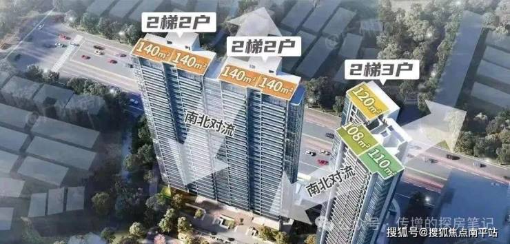 2号楼为两梯三户,分别有三种户型,108/110方做三房,120可做四房。3栋(3A/3B)则是140方可做四房户型,板楼设计,两梯两户,是楼盘的主打户型,货量最多。
