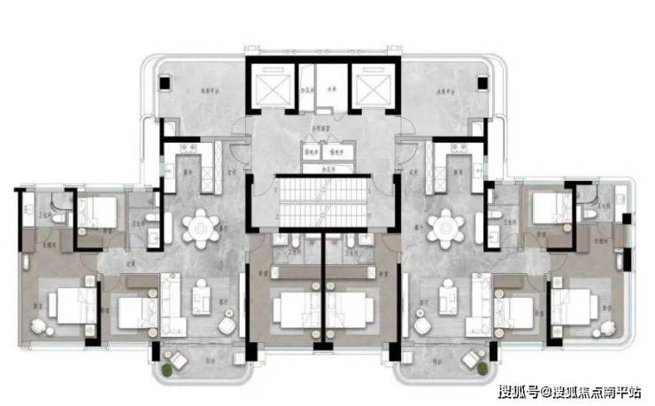 划四重礼遇入口,沿中轴布局,融合东方美学,营造归家仪式感。地下车库通过AI模拟优化车行流线,设私库与VIP车位,实现七类动线分流。地库以古典长廊、艺术水景及统一材质打造奢华视觉体验。单元大堂延续酒店式设计语言,营造艺术氛围。南北双区独立设置全龄活动空间,儿童乐园避开中轴以减少喧闹,休闲花园与运动场地结合台地高差布局,构建安全、静谧且充满活力的健康社区。