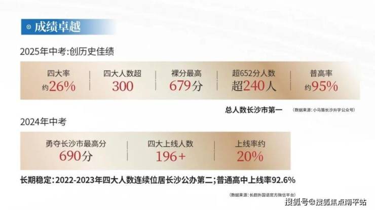 长郡外国语实验中学,2022-2024年连续三年四大率超20%,位列长沙市公办初中第二名;2025年更是登顶长沙,四大率约26%,四大人数300+,五小率约50%五小人数500+,普高率95%,稳居长沙名校TOP级名校。