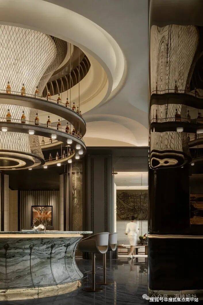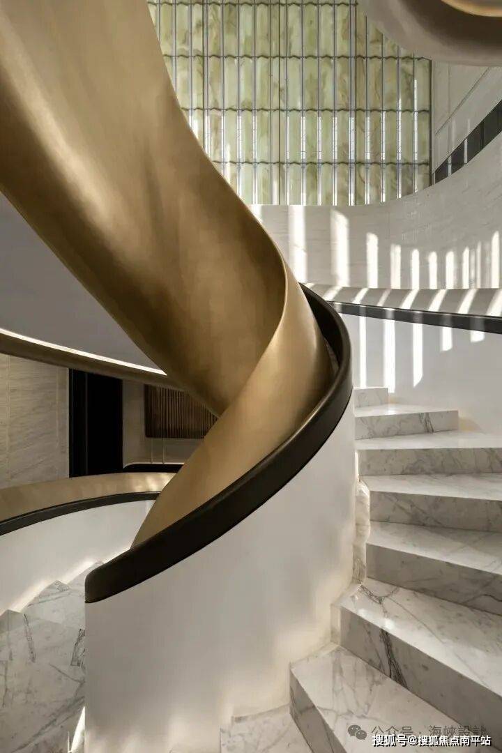 貫穿各層的藝術樓梯,以其流暢的曲線設計展現出韻律之美。金屬漆扶手閃爍著低調的光芒,與水墨奢石地面相映成趣,營造出一種靜謐的奢華感。曲面的樓梯宛如一件藝術品,它象征著空間的流動與時間的延展,為賓客提供了豐富的藝術體驗和獨特的視覺享受。