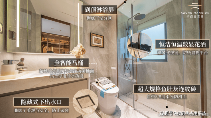 139/168㎡卫浴间更配置恒温数显花洒、主卫静音智能马桶,细节处处见真章。