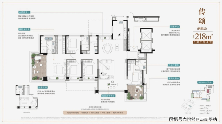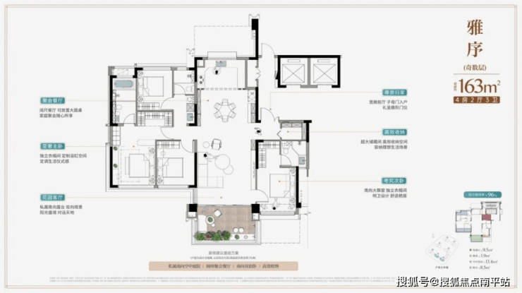 产品层面,建面约163-218㎡宋韵四代奢宅, 全线采用T2设计,综合使用率突破100%!