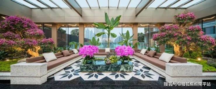 从社区大堂北侧,经由电梯通向架空平台上方的四季穿过园林,从首层大堂轻松归家。