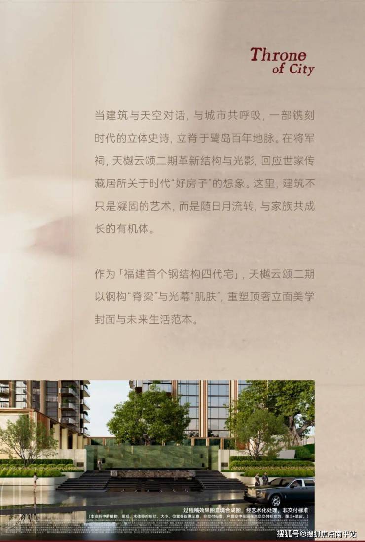 近期岛心将军祠天樾云颂二期曝光出的最新产品信息,「福建首个钢结构四代宅」+「三维端厅」,两个重磅关键词再一次冲击着顶豪市场的上限。