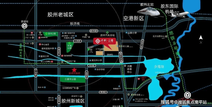 【 医疗配套】:东南方向5km为胶州首家三甲医院-上海东方医院,项目周边胶州中心医院、人民医院、妇幼保健院等3大医院,家门口享受优质医疗服务。自然资源配套:3公里为国家4A级少海湖湿地景区,再现“千年古埠、北国江南”的城市风采。