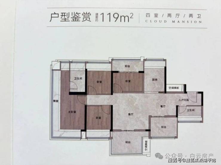 建筑面积约119m²/4房2厅2卫(如图报建图)