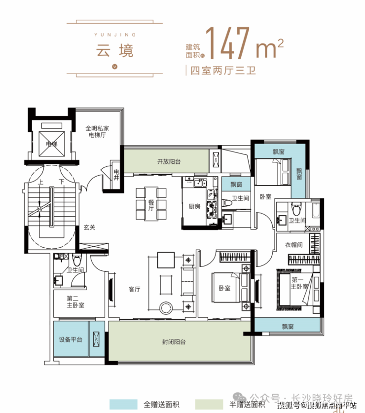 •星沙首个新规产品,至高得房率约110%,147㎡实用面积可比拟传统180㎡户型;
