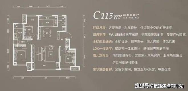 打造奢境舒居,远洋潮起东方建筑面积约115㎡光幕洋房,以约11.9米IMAX级大面宽、5.4米阔尺多功能宽厅、三开间朝南设计、双阳台布局,迭新空港人居想象。