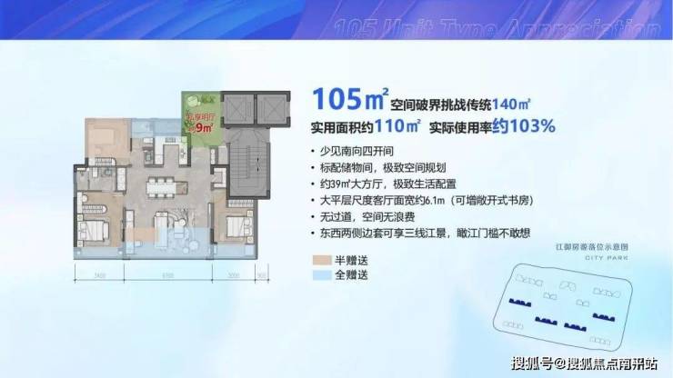 建面约105㎡的小户型,部分东西边套能享“三线江景”;建面约118㎡户型强调“江景平权”,约16m连续观江面,温州江景门槛不曾有;即便是建面约130㎡、建面约160㎡的改善户型,270°环幕江景的设计也绝非“独占”,而是与社区整体的江景资源分配形成呼应。在这里,无论户型大小,都能找到属于自己的那片江、那抹绿,这便是“均好”的起点。