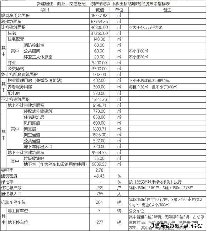 项目净用地面积约1.7万方,总建面约6.4万方,计容建面约4.6万方,其中住宅建面约3.7万方,整体容积率约2.76,总户数239户,地下机动车停车位277个。