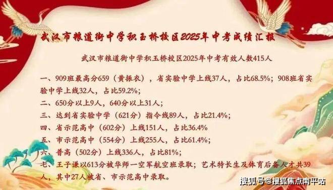 2021年,粮道街积玉桥校区普高率55%;2022年,普高率62.7%;2023年,普高率64.5%;2024年,普高率70.2%;2025年,普高率81%,示范率61.4%,这个成绩在整个武昌来说都是排名前列,成功冲进一梯队。