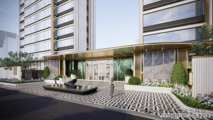 在建筑观感上,以金的稀贵属性为指引,通过香槟金铝板、名贵奢石等选材用度,打磨出奢境如金的鼓楼华府。