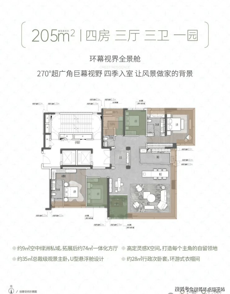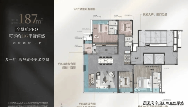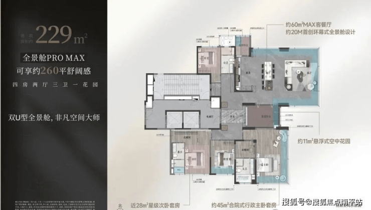 【建面约229㎡全景舱户型图】建面约229㎡可享260㎡空间感