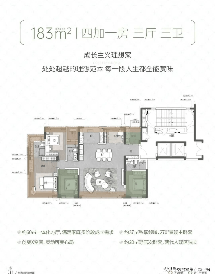 【建面约178㎡南厅户型图】建面约178㎡可享197㎡尺度感